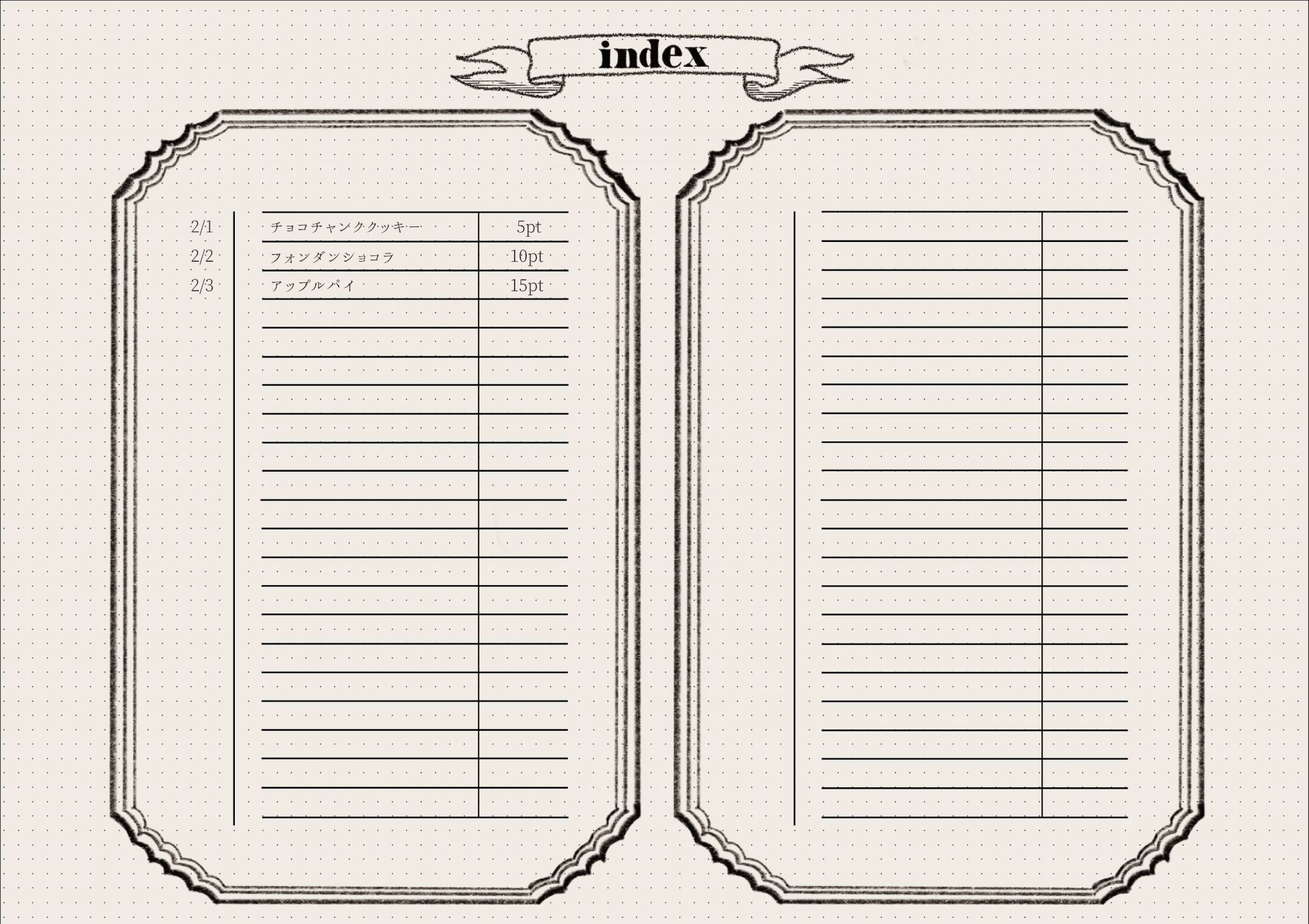 米粉の実は1日1個までのカウントになりますので、日付とレシピ名と総合ポイントを記入しておけば忘れる心配はありません。
