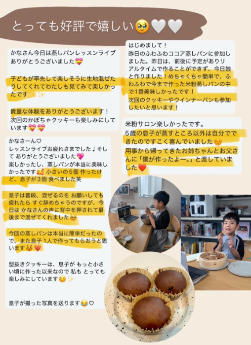同じ米粉好きが集まるオンラインコミニュティ。他の小さなシェフたちとの交流を楽しめます。美味しそうから繋がるってワクワクしちゃうよね✨