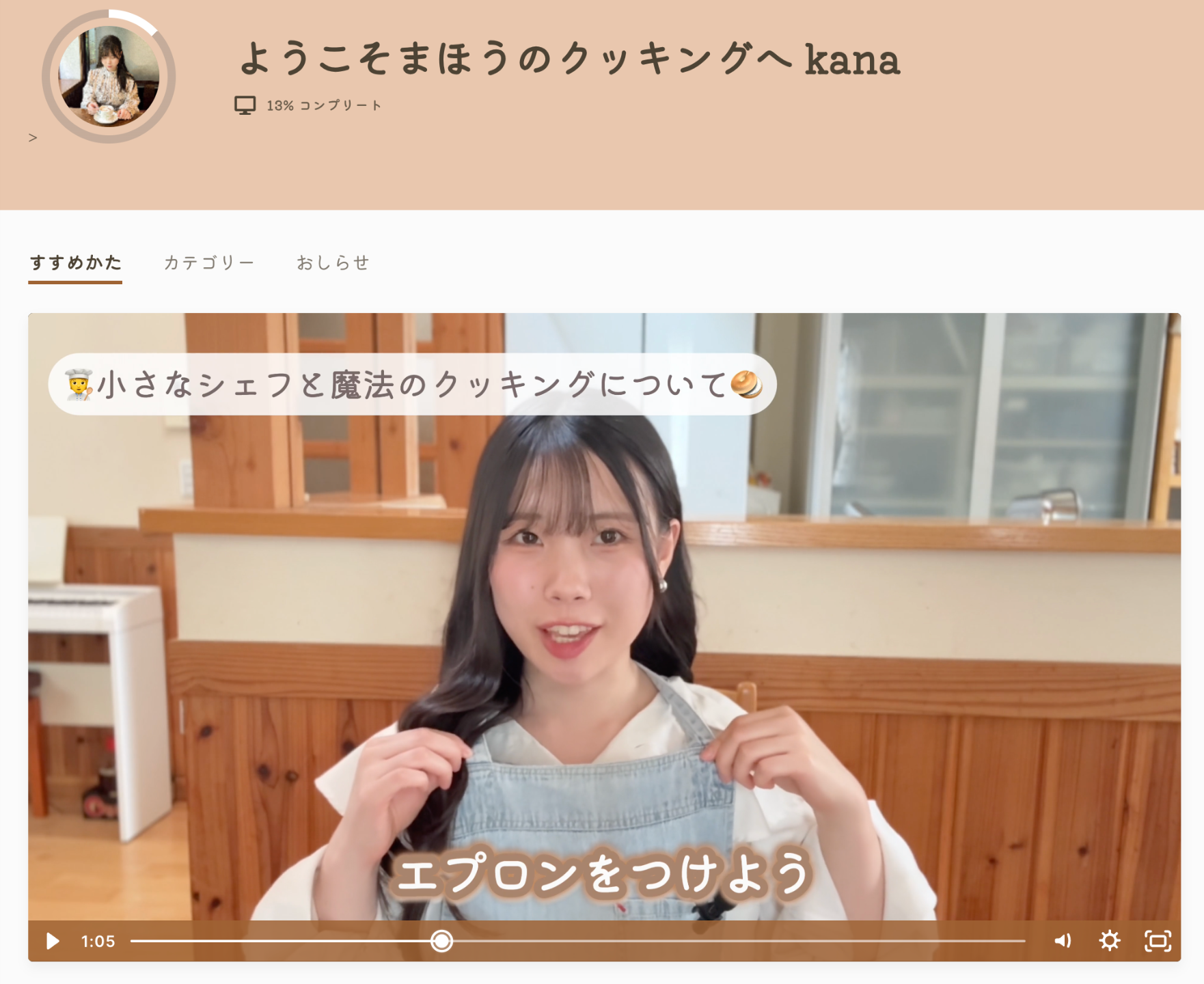 レシピ動画は全てKanaが作成。レシピはふりがな付きでお届けしています。