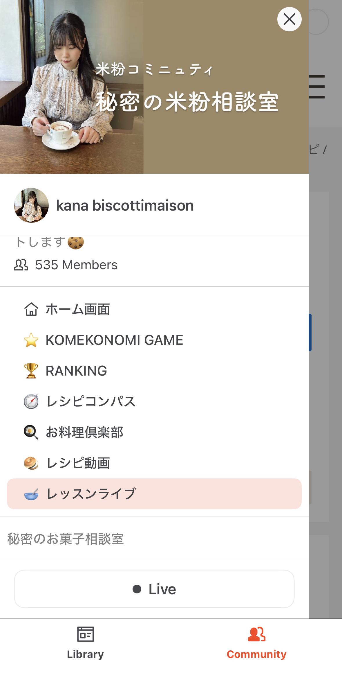 補足:アプリのコミュティタブにあるメニューにもレッスンライブリンクがございます!